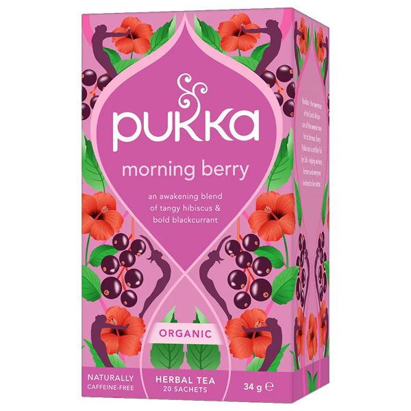 Ingredients: Rooibos leaf, hibiscus flower (28%), rosehip, blackcurrant fruit (6%), licorice root, spearmint leaf, rosemary leaf, blackberry fruit (2%), natural blackcurrant flavouring, ginger root, natural blueberry flavouring, lemongrass essential oil, spearmint essential oil.