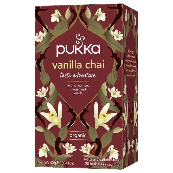 Flavoured herbal infusion. Naturally caffeine-free and ethically sourced, 100% organically grown ingredients: \r\nCinnamon bark (40%), ginger root (20%), licorice root, sweet fennel seed, cardamom pod (9%), vanilla extract (5%).\r\n16% FairWild™ certified ingredients (licorice) by dried weight. Visit www.fairwild.org. \r\n86% fair trade ingredients certified according to the Fair for Life Standard - cinnamon, ginger, licorice, fennel.