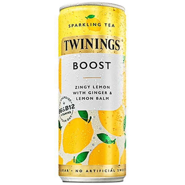 Ingredients: Carbonated Water, Fruit Juice from Concentrate (Apple, Orange), Lemon Juice from Concentrate (2%), Indian Black Tea Infusion (1%), Natural Flavourings, Lemon Balm Infusion (1%), Natural Lemon Flavouring, Ginger Extract, Vitamins (B6, B12, C), Preservative (Potassium Sorbate). Contains naturally occurring sugars.
