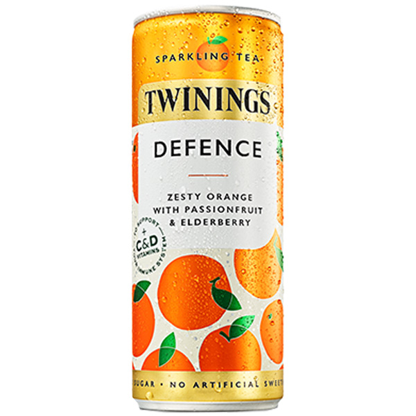 Ingredients: Carbonated Water, Apple Juice from Concentrate, Orange Juice from Concentrate (6%), Fruit Juice from Concentrate (Mango, Pineapple, Lemon), Chinese Green Tea Infusion (1%), Natural Flavourings, Ginger Extract, Natural Orange Flavouring with other Natural Flavourings, Natural Passionfruit Flavouring with Other Natural Flavourings, Elderberry Extract, Vitamins (C, D), Preservative (Potassium Sornate), Zinc. Contains naturally occurring sugars.