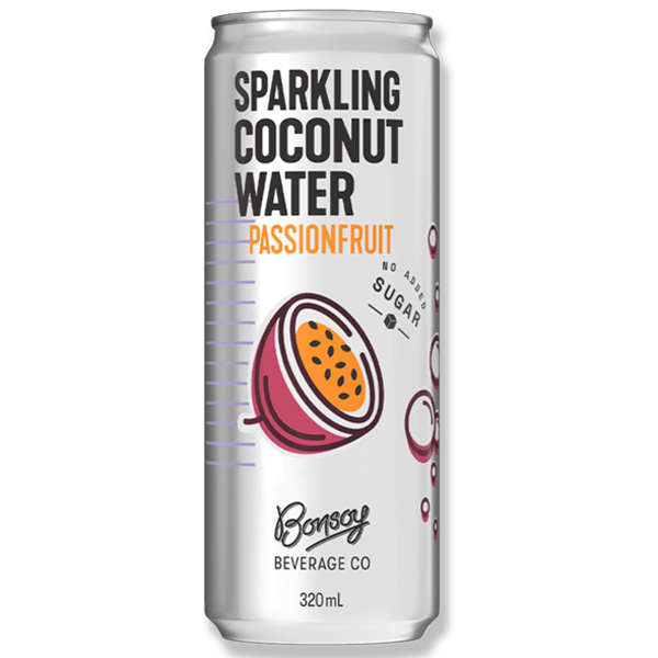 Organic coconut water (89.2%), Passion fruit Juice 10%, Carbon Dioxide, Natural Passionfruit Flavour 0.1%, Acidity regulators: Citric Acid, Ascorbic Acid