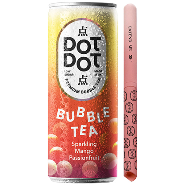 DOT DOT - CAN - MANGO PASSIONFRUIT SPARKLING BUBBLE TEA WITH TELESCOPIC STRAW - 12X250ML
