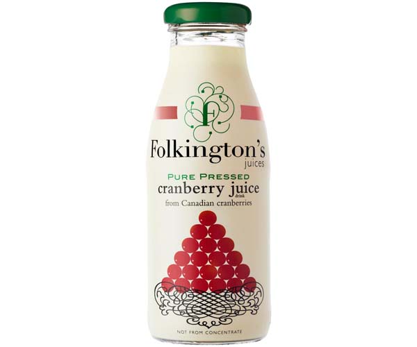 Folkington's cranberry juice drink is made from the Stevens variety of cranberry grown on the southeastern side of the St Lawrence River, Quebec, Canada. Situated some 500km north of the main N. American cranberry growing regions, Quebec's cooler climate creates an environment that is less dependent on the use of pesticides while also producing a fruit that is slightly sharper in taste.