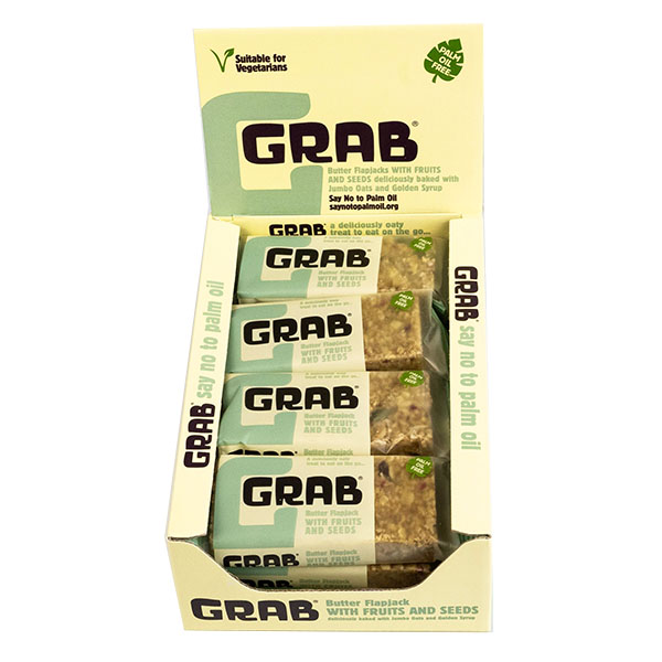 Grab Energy Butter Flapjacks with Fruits & Seeds are deliciously baked with Jumbo Oats, Soft Brown Sugar and Golden Syrup.