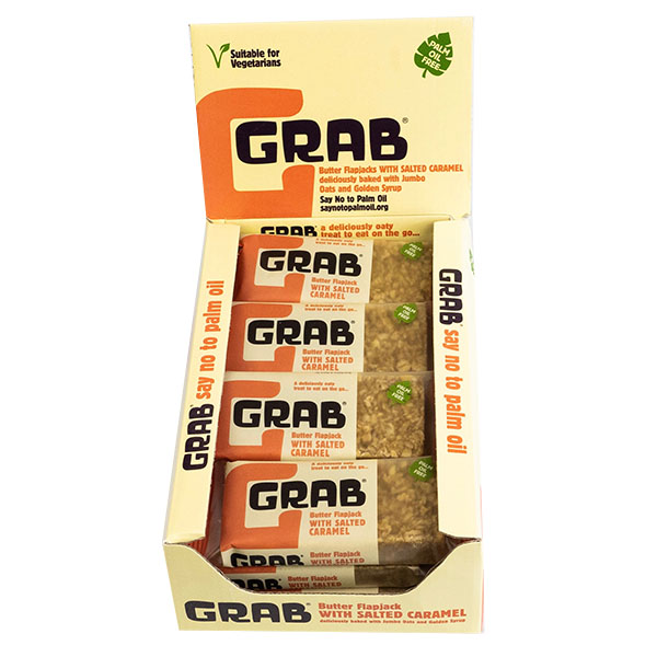 Grab Energy Butter Flapjacks with Salted Caramel are deliciously baked with Jumbo Oats, Soft Brown Sugar and Golden Syrup.