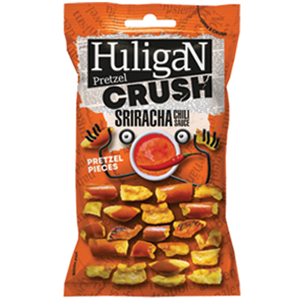 Wheat flour (gluten), sunflower oil, Sriracha chili sauce seasoning 12% [salt, sugar, dextrose, flavourings, garlic 8%, Cayenne hot pepper 6%, onion 3%, anti-caking agents (calcium phosphate, silicon dioxide), acidity regulator (citric acid), stabilizer (gum Arabic)], sugar, salt, yeast, rosemary extract, glazing agent (sodium hydroxide)