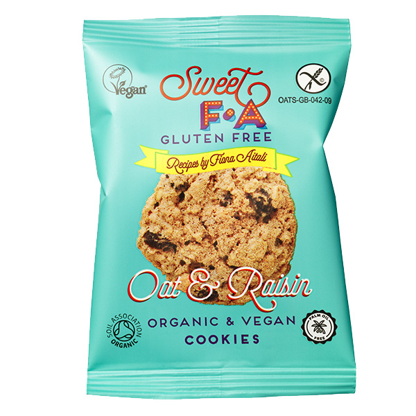 OATS** 26%, Sugar, Raisins 20% (Raisins, Sunflower oil), Margarine (Shea Butter, Coconut Oil, Rapeseed Oil, Salt, ALMOND Butter, Carrot Juice, Emulsifier: SOYA Lecithin, Natural Flavour, Lemon Juice), Tapioca Flour, Cinnamon, Salt*, Raising Agent*: Ammonium Carbonate. *Non Organic. **OATS used in this product are gluten free and have been specially produced, prepared and processed in a way to avoid contamination by cereal containing gluten.