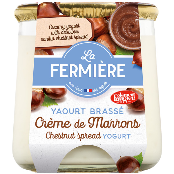 This yogurt associates the richness of an authentic stirred yogurt made with good milk from the Alpes, and the smoothness of a generous chestnut layer.