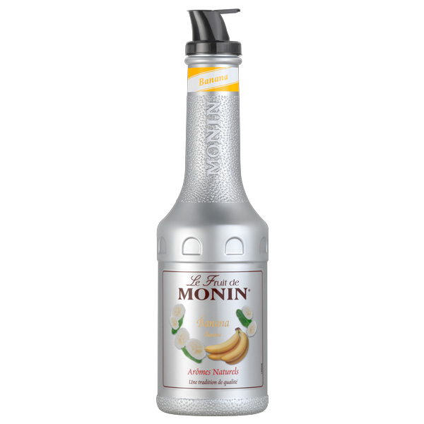 Banana puree, sugar, natural flavouring, preservative: potassium sorbate, acid: tartaric acid ( L(+)--), thickener: pectin. Contains 50,1 % of banana puree.