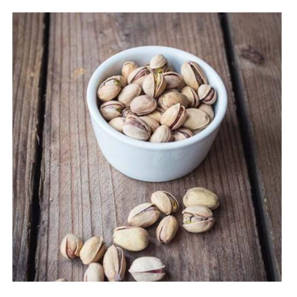 Pistachio, Pistacia vera, is a deciduous tree in the family Anacardiaceae grown for its edible seeds (nuts). Pistachio is a small to medium sized tree with a branching main stem (trunk) and a spreading growth habit. The leaves of the pistachio are pinnate and composed of five individual oval leaflets.