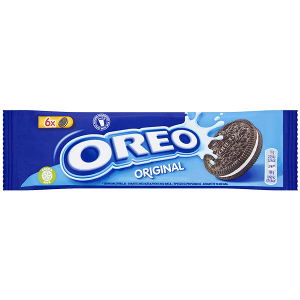 The world's famous cookie Oreo is a sandwich cookie consisting of two chocolate wafers with a sweet creme filling in between.