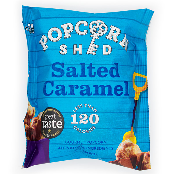 Our salted caramel popcorn was awarded a Great Taste Award as it expertly masters the salty and sweet flavour balance. Our intense sea-salted caramel buttery base topped with velvety, creamy chocolate flavour make Popcorn Shed Salted Caramel popcorn the must have, stand-out flavour in our portfolio. Our Salted Caramel popcorn shed' is inspired by dreamy days in Great British seaside beach huts (minus the rain).