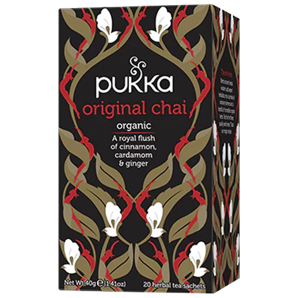 Herbal infusion with black tea. 100% organically grown and ethically sourced ingredients: Cinnamon bark \r\n(40%), black tea (20%), ginger root (20%), cardamom pod (10%), licorice root. 10% FairWild™ certified ingredients \r\n(licorice) by dried weight. Visit www.fairwild.org. 90% fair trade ingredients certified according to the Fair for Life \r\nStandard - cinnamon, black tea, ginger, licorice.