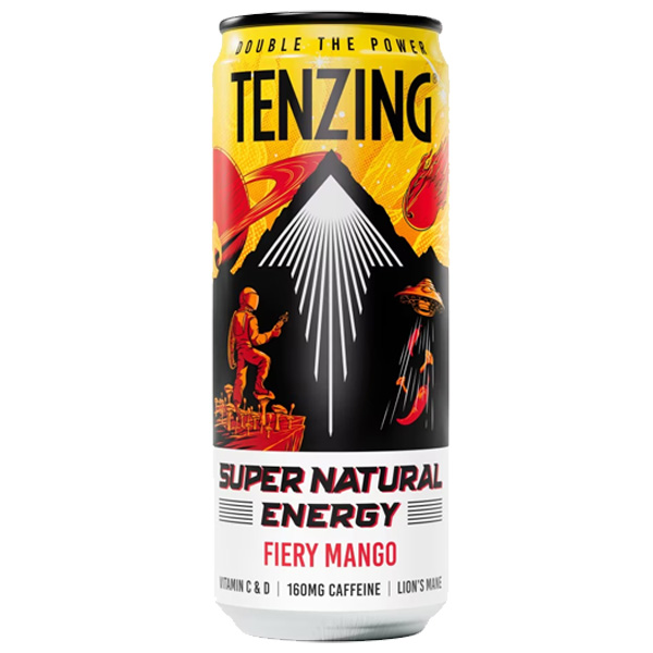 Sparkling water, beet & fruit sugar, mango juice (4%) and lemon juice (4%) from concentrate, herbal extracts (Lion’s Mane (500mg), Ginger (250mg), Cayenne Pepper, Acerola, Caffeine from Green Coffee (160mg), Green Tea, Vitamin D from Pines), natural flavourings, electrolytes from Himalayan rock salt (165mg), marine magnesium citrate (270mg)