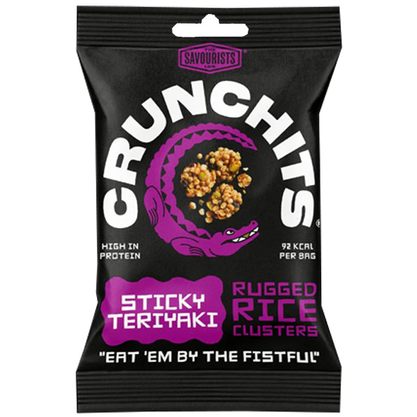 Beans 23% (Edamame [soya], Black beans), Chicory root fibre, Oat flakes, Rice\r\ncrispies, Wheat crunch (Wheat [gluten] flour, salt, yeast), Teriyaki seasoning (Rice\r\nflour, sugar, salt, garlic, maltodextrin, spice [cumin, fenugreek, ginger & coriander],\r\nvegetable oil [coconut, rapeseed], vinegar powder, flavouring), Soya protein crisp\r\n(Soya Protein Isolate, Tapioca Starch, Calcium Carbonate), Tapioca Starch,\r\nVegetable fat (shea).\r\nAdded sugar nil\r\nPalm oil free\r\nHigh protein\r\nHigh Fibre\r\nVegan\r\nHFSS compliant\r\nALLERGENS: Soy, gluten (are present)