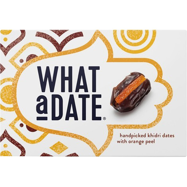 91% organic dates, 5% orange peel,lucose syrup, sugar.